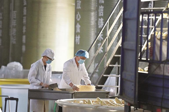 颜茜茜说,酸笋是柳州螺蛳粉的“灵魂”,要用科技对传统酸笋制造工艺进行升级改造,让产品得到更多年轻人的喜爱。几年来,她和广西大学、广西科技大学等多所高校的专家一起探索研发,设计制造新型食品级玻璃钢发酵罐,在传统老坛酸水中提取优质乳酸菌作为母本,实现鲜笋、豆角就地加工,为螺蛳粉生产提供本地风味的原材料。