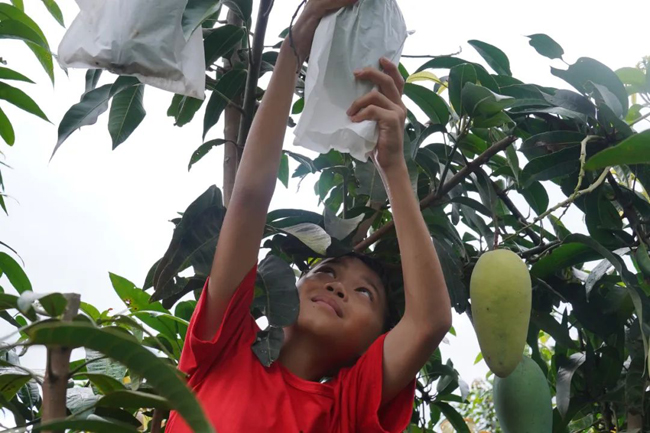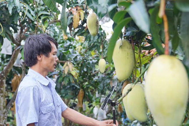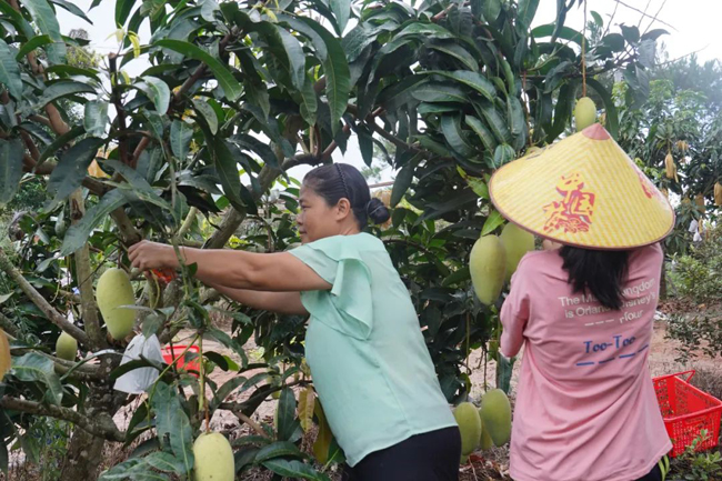 经过数年的辛勤耕耘,今年,他们的芒果园迎来大丰收。满园的芒果挂满枝头,个大饱满,色泽诱人,散发着阵阵甜香。