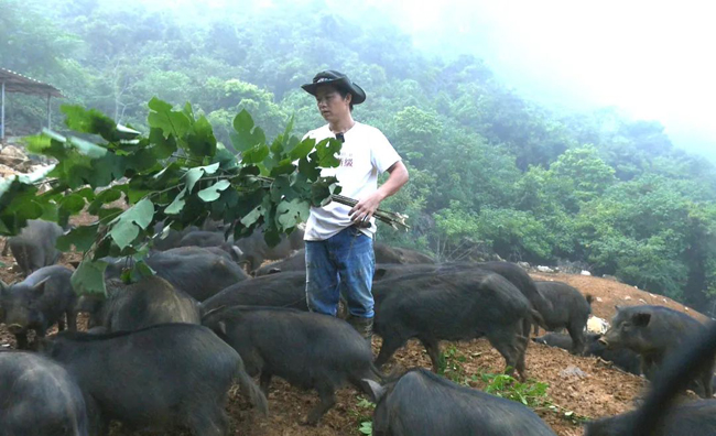 今年40出头的廖熙丰黝黑肤色、中等身材、精练能干。他饲养的“骆越香猪”最多的时候,大大小小存栏数达到5000头,成为宁明县远近闻名的“香猪司令”,也是当地乡村振兴战略产业发展的榜样和标杆。