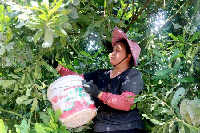 工人在采摘坚果。通讯员 徐肖玲 摄