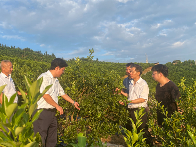 9月20~21日,在广西特色作物研究院区善汉研究员等人的陪同下,柴利军一行到阳朔县白沙镇等金柑产区实地考察了阳朔金柑产业现状、存在问题与发展趋势,详细了解金柑新品种选育推广、覆膜栽培技术、市场销售、农旅产业等情况,对当地金柑等特色产业发展给予了高度评价。