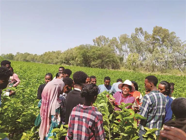 陈雄珍给埃塞俄比亚桑农传授桑叶护理技术。
