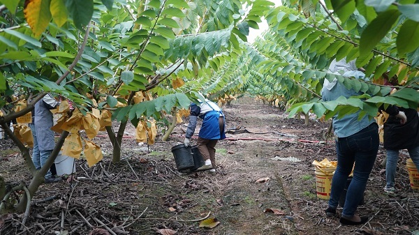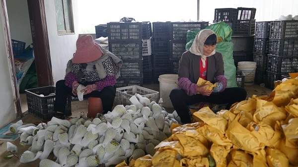 时下正是释迦果冬季果的成熟季节,校椅镇龙省村的释迦果也迎来了销售旺季,果农们正在加紧采摘成熟的果实销往全国各地。