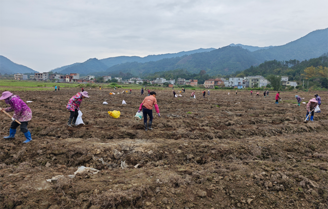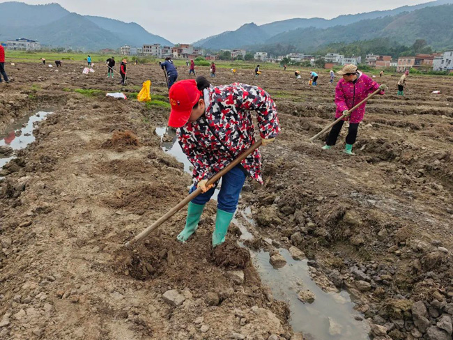 一位参与种植的村民高兴地说:“我的土地丢荒好多年,现在有老板来把土地利用起来,既可以领到土地租金,还可以帮忙种木薯领工钱,后面还会请我们帮除草、施肥、采收等,在家门口就有收入,真是太好了!”