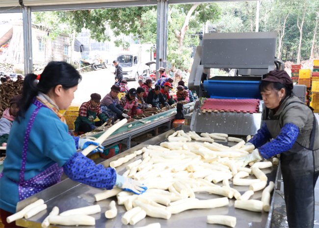 为了拓宽销售渠道,合作社采取“线下+线上”双轨销售模式:线下与深圳、广州、桂林等地食品供应链企业建立稳定合作,线上通过拼多多、淘宝、抖音等平台开展直播带货,同步销售新鲜木薯及初加工制品。