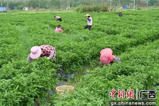 近日,广西梧州市藤县新庆镇辣椒种植基地呈现一片繁忙景象,近200亩8号线椒迎来大丰收。绿浪翻滚的田间,农户们穿梭其中,灵巧的双手在枝叶间翻飞,一筐筐翠绿修长的线椒堆成小山,分拣、打包的欢笑声与虫鸣鸟叫交织,奏响乡村振兴的“椒”响乐章。