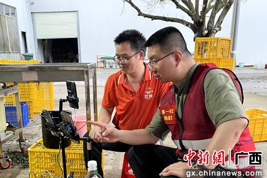 图为韦锦东(左一)在直播卖货。牙春柳 摄