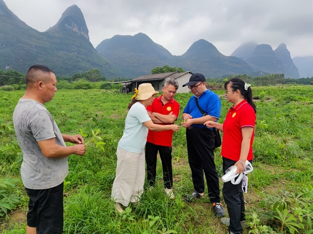6月12日至13日,广西薯类创新团队桂北综合试验站联合国家木薯产业体系病害防控岗团队,由桂北试验站站长、高级农艺师杨艺玲带队,一行4人协同病害防控专家时涛研究员、王国芬副研究员,深入桂林、来宾、柳州等地市(县、区),开展木薯花叶病毒病发生情况专项调研及田间防控技术指导。