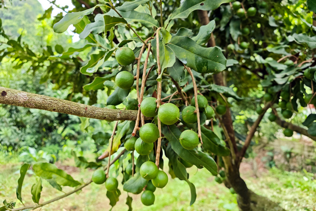 村民赵宝强种植约35亩,他看着自家果园里挂满果实的坚果树,脸上洋溢着幸福的笑容:“以前种玉米、水稻,收入不高,现在种坚果,收入比以前翻了好几番。今年我家的坚果产量预计能达到13吨,按照现在的市场价格,收入能有好几万元。”