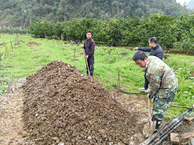 王家胆种植户给太秋甜柿施用优质有机肥