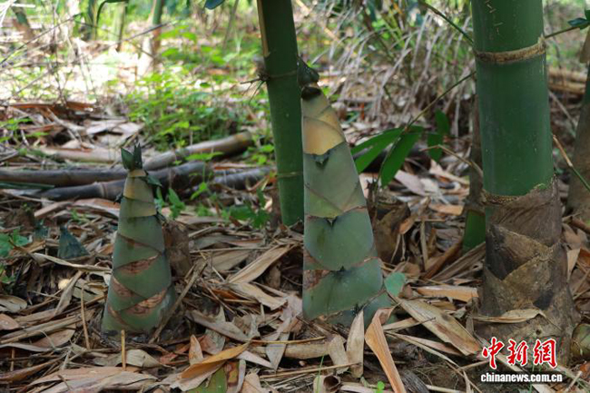 图为麻竹笋破土而出。韦新娜 摄