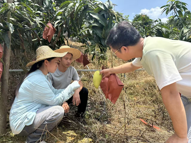 同时,该乡农业服务中心技术员还深入果园,对种植户开展“点对点”培训,要求各合作社、家庭农场遵循严格的采摘标准和筛选环节,采摘人员必须戴手套、使用专用果剪,避免果实受损,采摘后立即进行初选,剔除畸形果、病果、损伤果,从源头保证芒果颜值与品质双在线。
