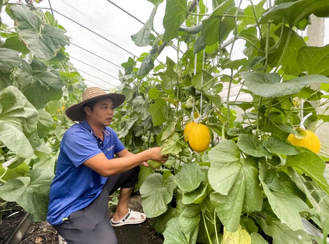 吴剑铭在采摘黄金哈密瓜。