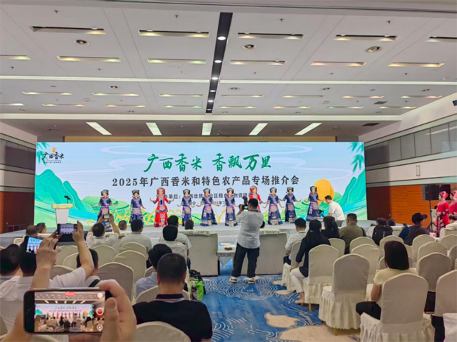 展会期间,广西专题举行了“广西香米、香飘万里”2025年广西香米和特色农产品专场推介会,并邀请到国家发展和改革委员会、国家粮食和物资储备局的领导嘉宾参加推介会。