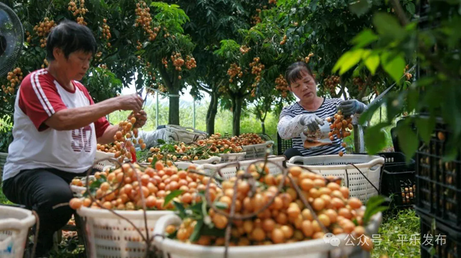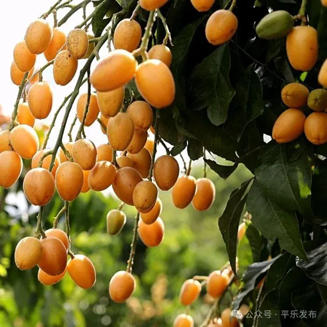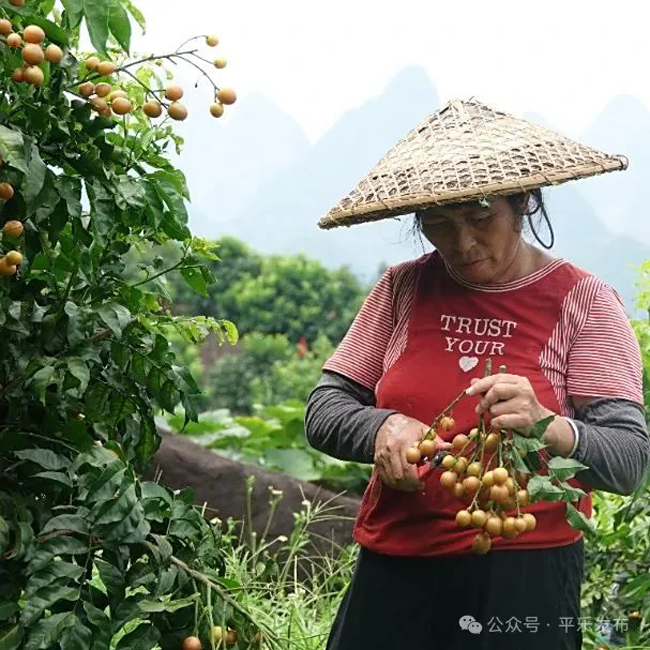 丰收时节,平乐县的山野田间,处处弥漫着黄皮果特有的清甜香气。一串串金黄饱满的果实缀满枝头,压弯了树梢,在阳光下闪烁着诱人的光泽。从平乐镇马渭村到大发瑶族乡的连绵山丘,再到张家镇的桃岭村与朝仙村,远眺同安镇的平山村,果农们穿梭于郁郁葱葱的果园,灵巧的双手采摘着丰收的希望,空气中弥漫着果香与欢声笑语。