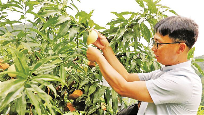 目前,纳黄屯秋蜜桃种植面积超过40亩,预计带动种植户年均增收2万元。