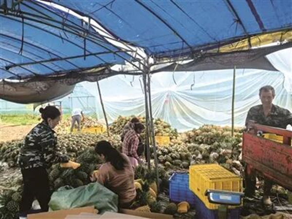 农民在整理采摘下来的凤梨。董宇翔 摄
