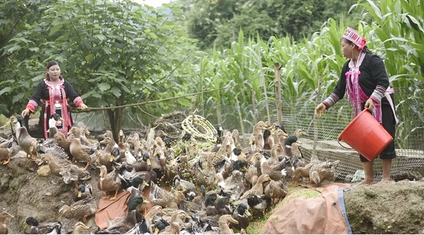 瑶家妹子养殖西林麻鸭。
