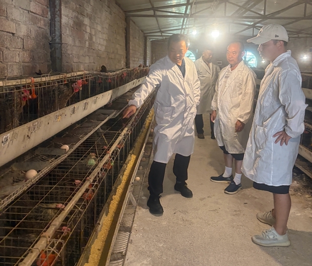 在公司的凤鸡繁育核心基地现场,负责人向特派员们介绍到,基地有育雏鸡舍1栋300平方米,后备鸡舍2栋700平方米,种鸡舍8栋3200平方米,孵化车间2栋1000平方米,配套有相应的养殖、孵化设备; 年存栏父母代种鸡3万套,目前可向社会提供优质凤鸡苗300万羽以上,同时通过“公司+农户”年可提供优质肉鸡200万羽。科技特派员们针对基地养殖现状,与公司负责人从凤鸡选育、繁殖孵化等关键技术环节进行了深入交流。双方表示,希望今后加强合作,共同开展龙胜凤鸡品种资源保护与利用,聚焦提纯复壮与良种繁育关键核心技术,破解“种子、种苗”、“品质提升”卡脖子技术瓶颈,为龙胜凤鸡特色产业可持续高质量发展奠定基础。