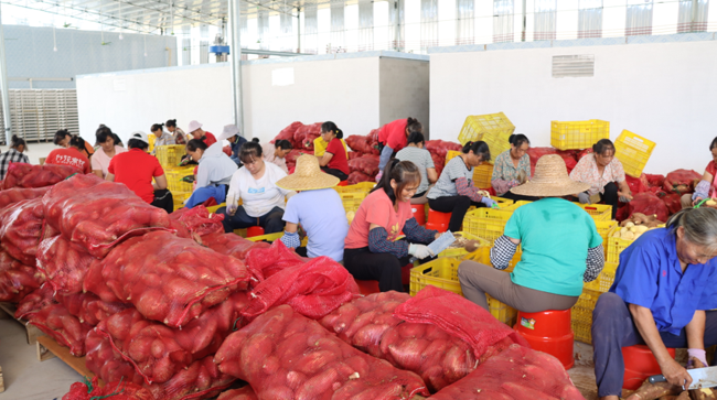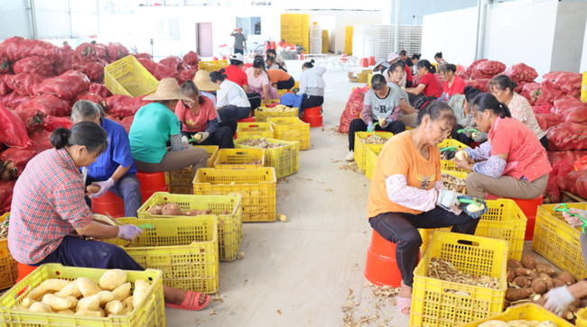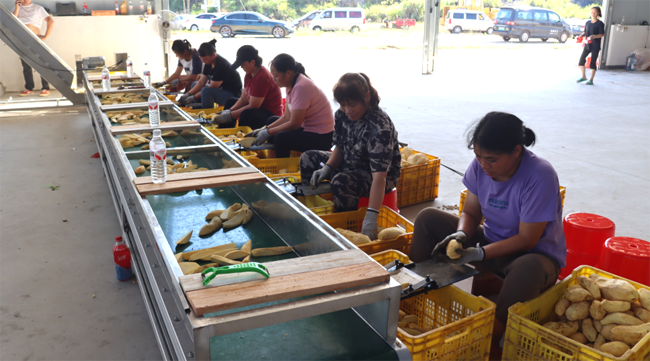 走进公司规划建设的生产加工区,2041平方米的标准化厂房格外醒目。车间内,清洗机、切块设备与烘干流水线有序排布,据介绍,这套先进生产系统投用后,年产红薯干将达600吨,相当于把近2000亩红薯地的收成转化为优质农产品。