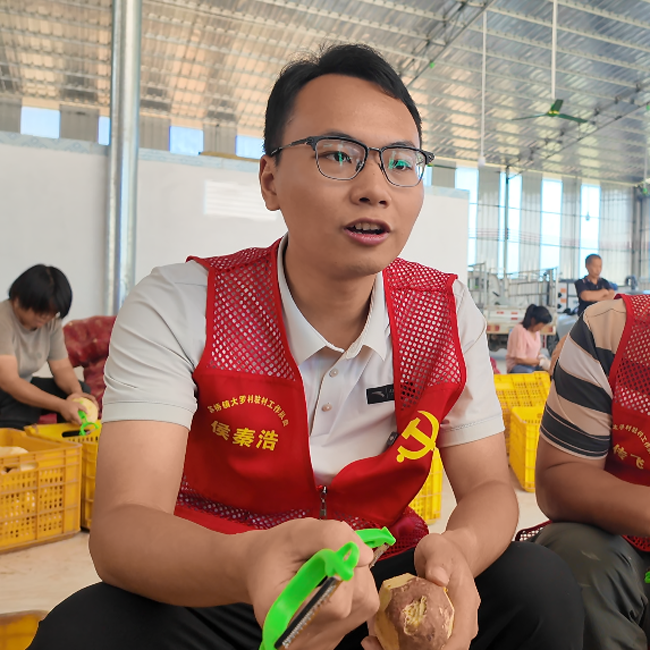 “我是驻村工作队的侯秦浩,来合作社帮忙只有一个心思,那就是帮老百姓把红薯变值钱。”
