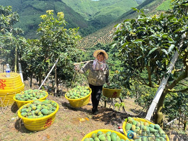 这份丰收的密码,早在10年前便埋下了伏笔。当时的村党支部书记黄海文指着起伏的山峦介绍:“六柳村平均海拔800米,昼夜温差达10℃,比河谷地带低5℃,这种独特的气候让芒果挂果期延长了整整一个月。”村“两委”班子瞄准这一自然禀赋,带领党员群众采取“党支部+合作社+基地+农户”的模式发展晚熟芒果产业。村里的芒果合作社不仅统一供应优质种苗,还邀请农业专家开展技术培训,培育出晚熟台农等特色品种。