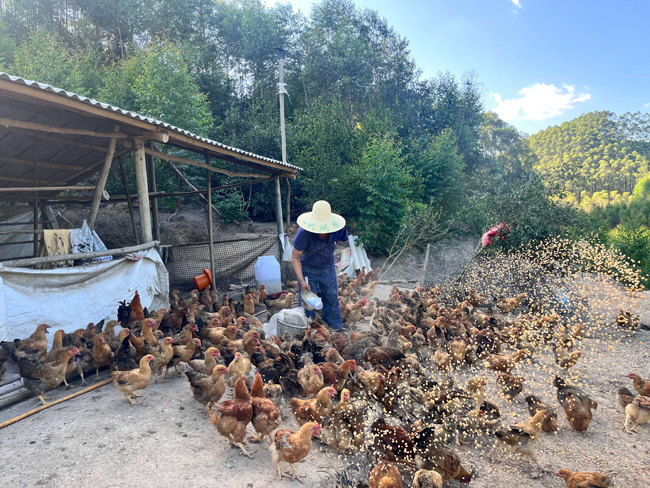 其实,韦仕忠与养殖的缘分早有铺垫。2009年,他就在自家鸡舍尝试养殖肉鸡,但因缺乏技术,鸡苗成活率低,规模始终停留在百来只。2019年,村后山闲置林地让他看到新可能——“山林空气好,鸡活动空间大,肉质肯定受欢迎”,发展林下生态养鸡的想法在他心中扎根。