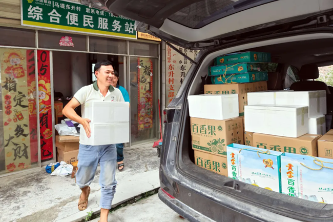 自2022年因重走长征路与马堤乡东升村结缘,因为看好当地的发展,阮兆平便将自己的专业与热忱倾注于此。在村里的田间地头,总能看到他忙碌的身影。从打通产销堵点、构建物流网络到探索产业新模式,他以三项关键举措为这个小山村注入了崭新活力。这位从陌生到熟悉的“助农人”,用实干苦干成为了村民心中可靠的“贴心人”。