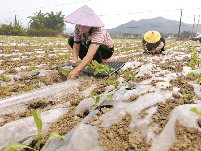 “近年来,公司采取春夏季水稻、黄瓜、豆角,秋冬季包心肉菜一年种几造的方法,规模发展高产优质高效特色蔬菜农业产业,打响了企业品牌。”公司负责人蒙祥升说,基地600亩全部种植肉芥菜,预计用两周时间完成。为了进一步促进当地蔬菜产业发展,今年专门从南宁市横州市请来近30名工人,手把手传授当地群众蔬菜种植技术和管护经验。
