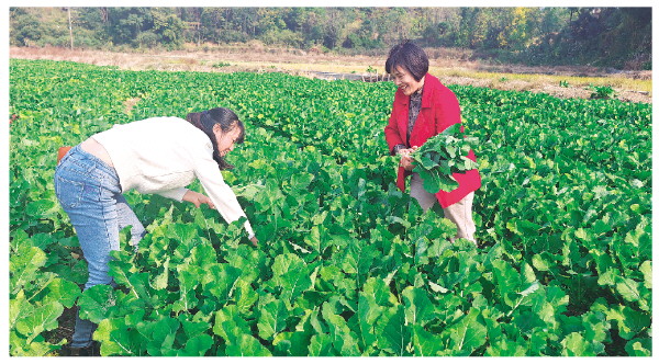 ◤种植户在采收板蓝根油菜。 邓琳 摄