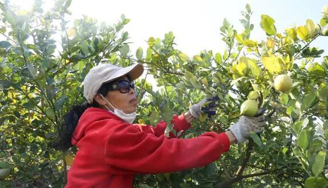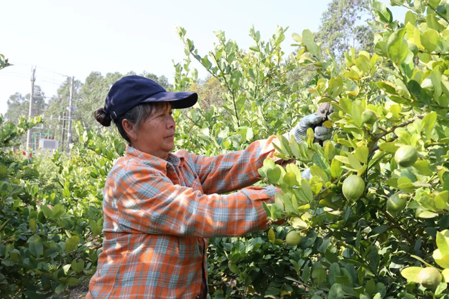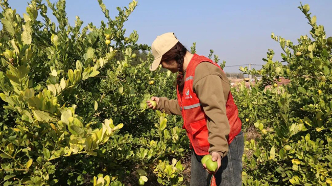 “潭西村是2023年引进了广东香水柠檬树苗,基地占地100余亩,从2024年开始挂果,现在产量逐年增加,2025年已经达到了6万斤,预计2026年达到10万斤以上,年产值大概25万元。”据潭西村驻村第一书记龙拔升介绍,该项目采用“党总支部+合作社+公司+农户”的合作模式,通过潭西村股份经济合作社负责提供土地、种植与日常管理、基地种植配套设施,并向群众提供优质种苗和种植技术方式带动本村农户发展香水柠檬种植产业,通过提供12个务工就业岗位,让周边村民实现就近就业增收。“以前这里是片荒地很可惜,现在开发了柠檬产业种了一片绿油油的果树,可香可美了。来这里工作每天都有170元的收入,而且家里离这也不远,生活也有希望了。”正在采摘的监测户陈家妃告诉记者。