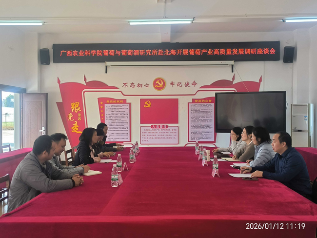 日前,广西农业科学院葡萄与葡萄酒研究所成果所长(研究员、国家葡萄产业技术体系南宁综合试验站站长)一行4人赴北海市开展葡萄产业高质量发展专题调研活动,活动通过座谈会与实地考察相结合的形式展开。