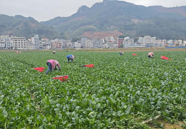 该基地是推进乡村产业振兴、深百农产品供应链和深圳市菜篮子基地重点项目,已在平乐村、洞好村和龙川村建成3000亩。指导组深入田间地头,察看蔬菜长势,了解“村经济联合社+龙头企业+农户”的运营模式,并围绕产销衔接、品牌打造、联农带农等情况与右江区有关负责同志展开深入交流。