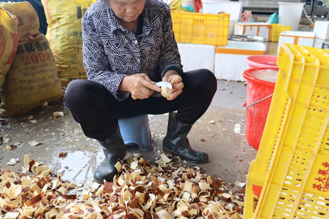 在现场可见,采收后的木薯被转运至合作社加工点,去皮、清洗、切割、打包等生产线高效运转,工人们各司其职、有条不紊,将新鲜木薯加工成标准化产品,确保第一时间发往各地市场。从田间采收、集中收购到加工、销售,一条完整的木薯产业链已初步成型。目前,那梭镇黄心木薯已构建起多元化销售渠道,通过大型连锁商超、电商平台等渠道,畅销全国、远销海外。