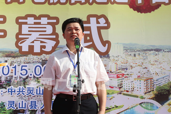灵山县委书记廖应灿宣布2015·灵山荔枝节开幕。(图片来自新华网 莫志成 摄)
