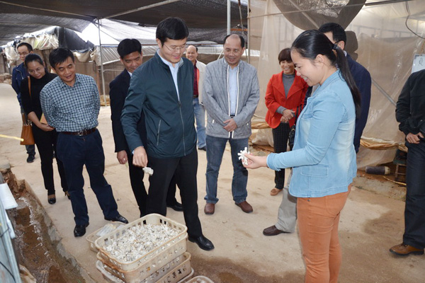 检查组在横县美丽南方菌业专业合作社基地考察