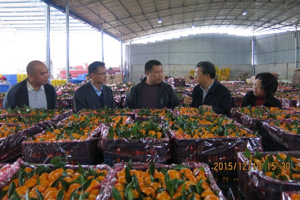 谢东副厅长(右二)和合作社负责人了解交流南丰蜜桔销售情况