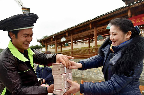 当日,广西环江毛南族自治县思恩镇双乐苗寨举办年度分红大会,加入当地家文果业合作社的26户苗族同胞每户领到了5至15万元不等的分红款。果农参与专业合作社发展柑橘种植是环江县果业发展的一个缩影。近年来,当地在苗木培育、果树病虫害防治、果园现代化管理以及水果批发等领域拥有丰富经验的大型合作社面向环江乡村吸纳果农,带动果农集体脱贫致富。