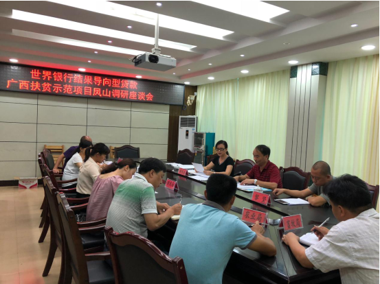 为做好世界银行结果导向型贷款广西扶贫示范项目前期准备工作,督促相关县加快完善项目实施方案,确保项目顺利启动实施。广西农业外资项目管理中心领导带队分别于7月17-19日、23-26日先后前往乐业、凌云、田林、马山、上林、天峨、凤山、巴马、东兰、大化、忻城等项目县调研,并与项目县项目领导小组及相关实施单位负责人座谈。