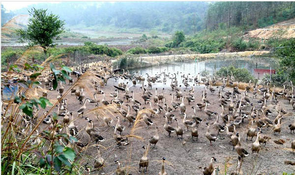 近年来,防城港市港口区通过“公司+基地+贫困户”的模式,引导贫困户发展养殖雁鹅产业,走出了一条养鹅脱贫致富的新路子。