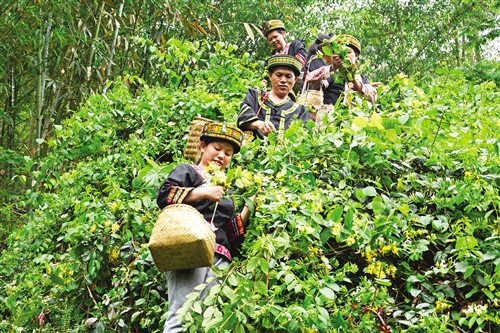 瑶胞采摘金银花。