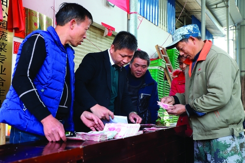 12月13日,在高田村委田心自然村举行的种植收益发放仪式上,村民放起了鞭炮,舞起了狮子,唱起了欢快的彩调,载歌载舞庆祝一年的丰收。