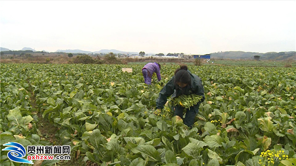 日前,记者在富川县福利镇毛家村的甜菜心种植基地看到,村民们正在菜田里采收甜菜心。毛家村委主任莫瑞胜告诉记者,2019年他们分两批种植了300多亩的甜菜心,在村里润东果蔬专业合作社的牵线搭桥下,村民们种出来的蔬菜有了稳定的销路和良好的价格保障。