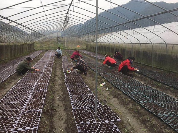 位于芙蓉村的8万株西红柿育苗盘已备好正在播种中
