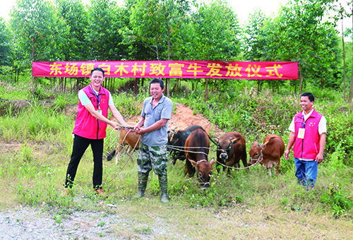 5月11日上午,钦南区东场镇白木村举行给贫困户发放致富牛仪式。