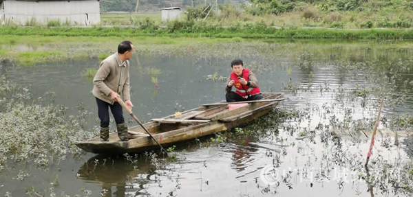 文敏杰在田螺养殖基地察看田螺长势。