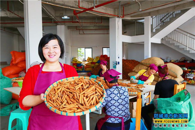 创业之路满是荆棘,小时候经历过的苦难,练就了杨媚不畏艰难,砥砺前行的坚韧,她说:“小的时候经历过那么多的苦难,我都熬过来了,我始终坚信方法总比困难多,没有翻不过的山、过不去的坎,没有脱不了的贫。”现在,在防城区那里蒙易地扶贫搬迁安置点里,杨媚有了自己的扶贫就业车间,以生产加工无硫大红八角、春花八角、肉桂(桂皮)、益智仁、砂仁等香料药材为主,产品主要供应给河南省双汇集团等工厂,扶贫车间的工人,就是安置点中的贫困户,现就业人数已达35人,每人工资按劳分配,多劳多得。在这里工作的贫困户通过就近就业,每年可增加收入,日子更有盼头。