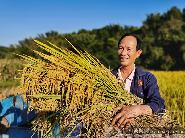 吴承良在收割稻谷。广西新闻网通讯员 王振钊 摄