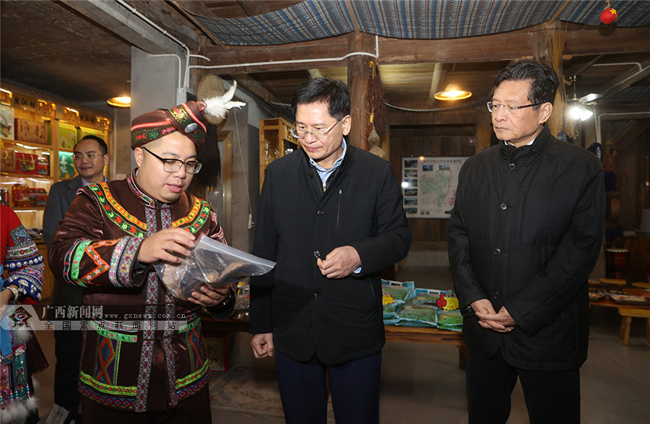 12月5日,自治区代主席蓝天立来到融水苗族自治县梦呜苗寨,考察当地旅游扶贫项目建设情况。记者梁凯昌摄